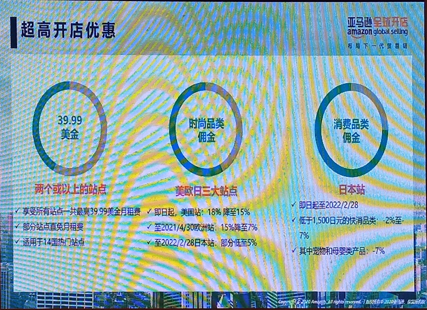 39.99美金/月開(kāi)通兩個(gè)或兩個(gè)以上站點(diǎn),部分站點(diǎn)可以直接免租金。時(shí)尚類(lèi)傭金還有更多優(yōu)惠,比如從現(xiàn)在起美國(guó)站從18%將至15%;至2021/4/30歐洲站從15%降至7%;至2022/2/28日本站部分降至5%;