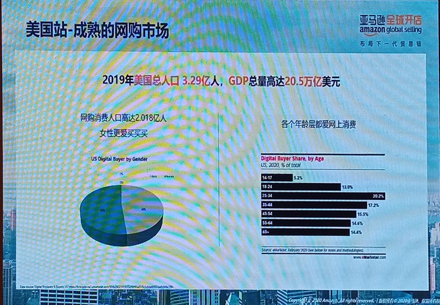 美國(guó)站-城市的網(wǎng)購(gòu)市場(chǎng)。2019年美國(guó)總?cè)丝跀?shù)量是3.29億人,GDP總量高達(dá)20.5萬(wàn)億美元。網(wǎng)購(gòu)消費(fèi)水平高達(dá)2.018億人,在網(wǎng)購(gòu)人群和數(shù)量上都非常的占優(yōu)勢(shì),而且人均消費(fèi)水平非常高,女性買(mǎi)家更喜歡買(mǎi)買(mǎi)買(mǎi)。
