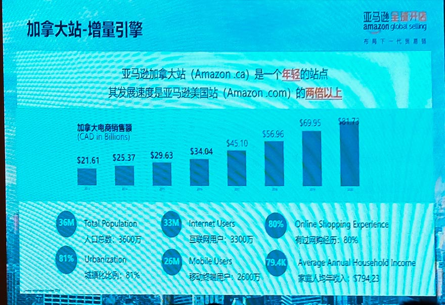 加拿大占是個(gè)潛力股,是一個(gè)正在繼續(xù)增量的快速發(fā)展站點(diǎn),其發(fā)展速度是美國(guó)站的兩倍。更容易搶占商機(jī)。