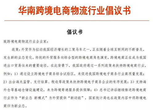《華南跨境電商物流行業(yè)倡議書》