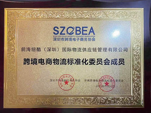 ▲紐酷國(guó)際“跨境電商物流標(biāo)準(zhǔn)化委員會(huì)成員”