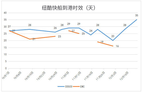 有位廣州的客戶今年走了30、40票貨,出了非常趕時(shí)效的走了美森,其余的都是走的定提快線。2021年整年下來時(shí)效都非常滿意,美森限時(shí)達(dá)最快的一次是開船后13天lax9簽收了。而定提的時(shí)效是20天多一些,偶爾會(huì)慢幾天,都是可接受范圍之內(nèi)。特別是紐酷的服務(wù)也是非常的認(rèn)可。